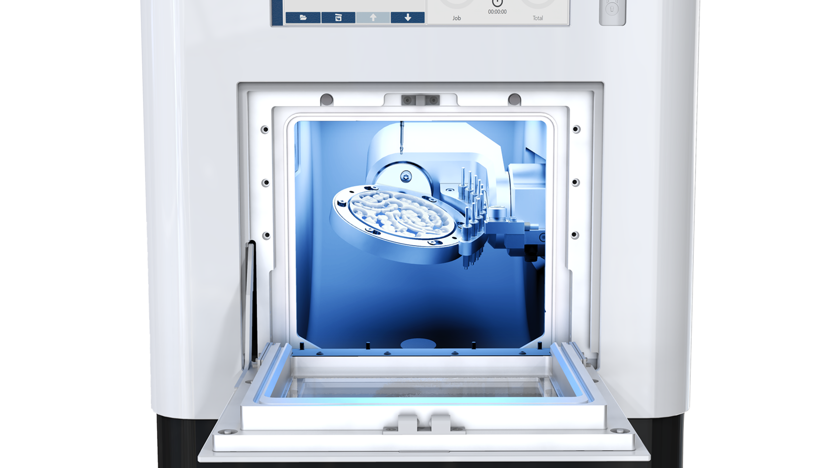 Чрезвычайно устойчивая конструкция моноблочного литого корпуса позволяет производить точную обработку круглых заготовок и блоков. Небольшие размеры станка и технология одновременной обработки по 5 осям обеспечивают уникальное соотношение размера и функциональности станка . Убедитесь сами в производительности CORiTEC 150i для вашей лаборатории!