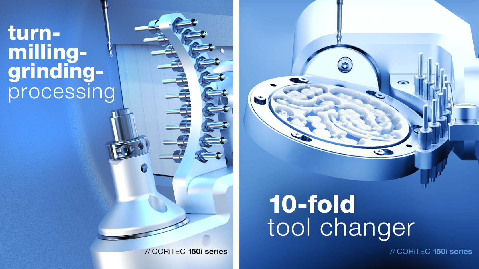 Будь то влажная или сухая обработка, заготовок из дисков или блоков, серия CORiTEC 150i впечатляет во всех областях.
